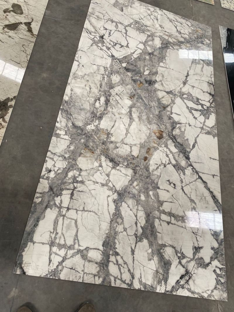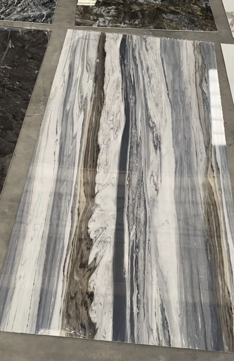 The large porcelain marble tiles can be used for dining table and coffee table, door panel, cabinet veneer, hand washing